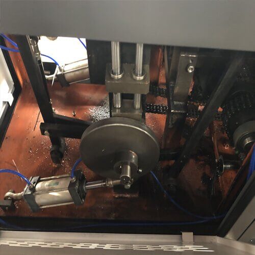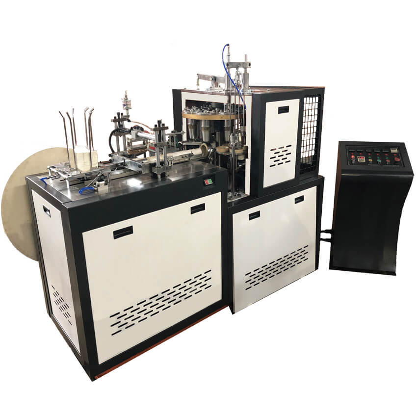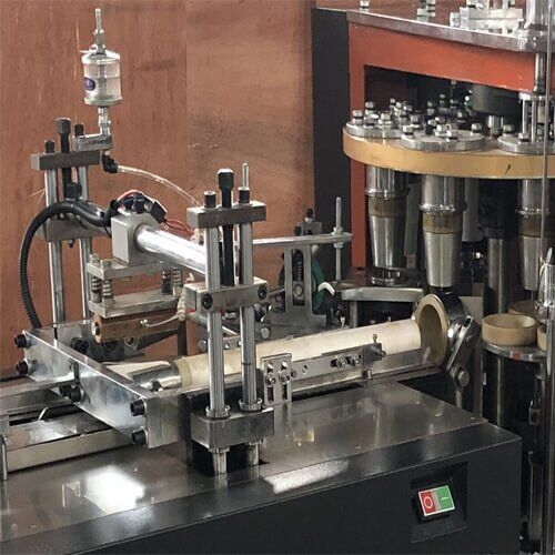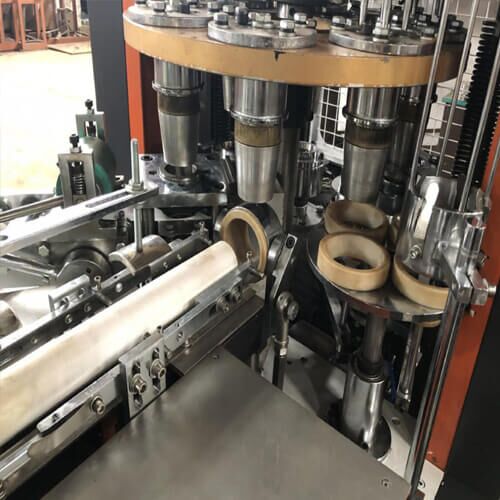 This machine runs a whole produce of paper feeding,body sealing,oiling,bottom punching,heating,knurling,curling,cup discharge and cup counter.